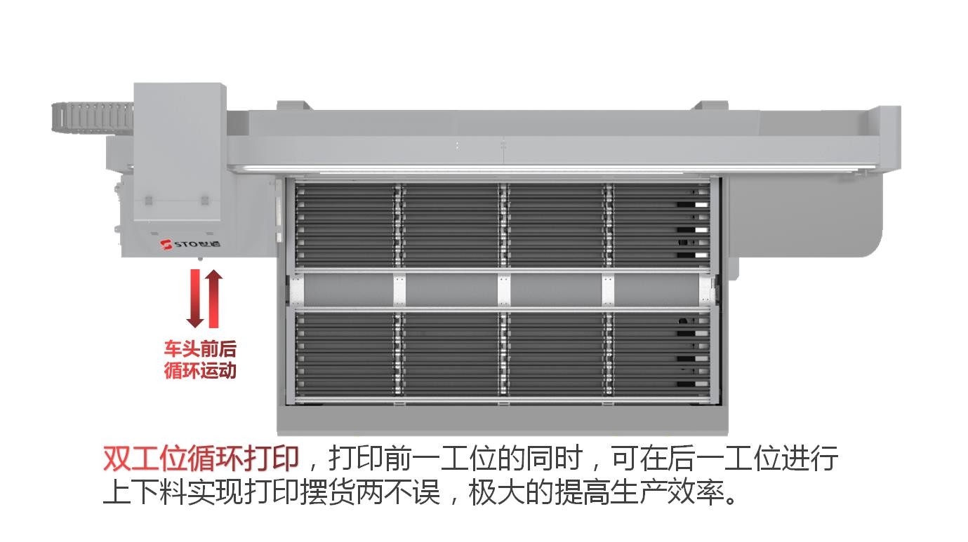 全球首(shǒu)創四排雙工位打印(yìn)平台,四排產品擺放區域同時(shí)進行打印。